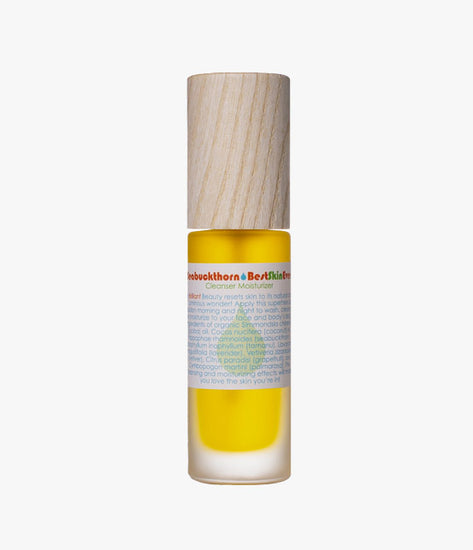 Seabuckthorn Best Skin Ever, resets skin to its natural state of luminous grace! Created with harmonious, organic oils perfect to bring into balance every skin type, Seabuckthorn Best Skin Ever is brimming with nourishing bioactive botanical compounds. Skin sings under the care of Seabuckthorn and all her attentive tissue-attendants that absorb effortlessly into the skin, infusing tired tissues with a kaleidoscope of botanical blessings. Our Golden Jojoba melts into endless moisture, working with Coconut and Lavender to supple and, balance the skin. Brilliant berries of Tamanu inspire the freshest skin, while rich roots of Vetiver balance sebum in the skin. Grapefruit tightens and tones as Palmarosa nourishes and adores each pore.